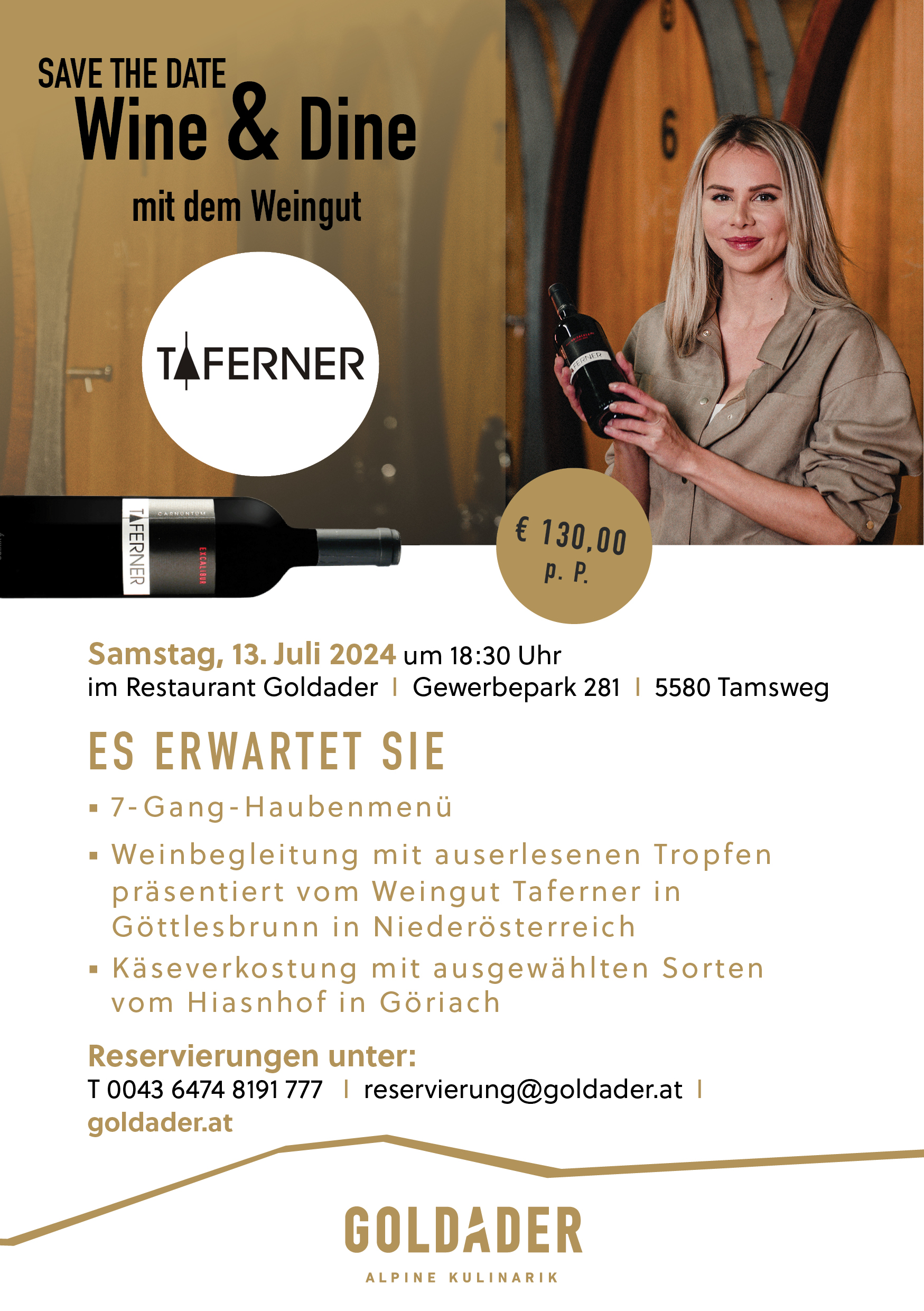 Feste soll man bekanntlich feiern, wie sie fallen — am besten mit ganz viel Stil und Charme. Reservieren sie das Goldader für private Events oder geschlossene Veranstaltungen. Lassen Sie bis zu 280 Gäste die Einzigartigkeit des Lungaus selbst entdecken, dank des ausgezeichneten Panoramablicks auf die Bergwelt rund um Tamsweg.